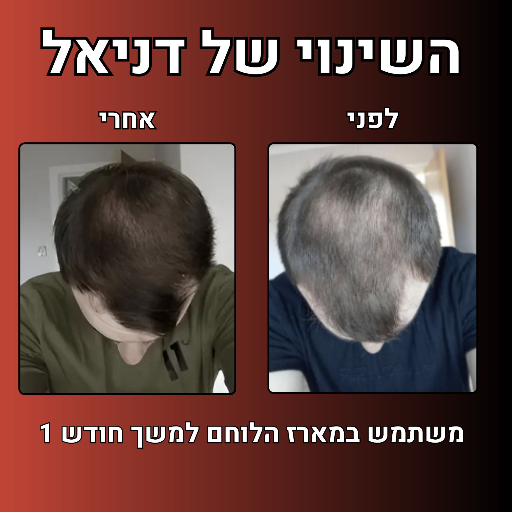 התחלתי להקריח מגיל צעיר וחבר המליץ לי על מארז הלוחם, אני חודש וחצי בפנים וכבר אפשר לראות תוצאות בעיניים. אפילו הבת זוג שלי אמרה לי "מה זה? השיער חוזר?" ניסיתי הכל, אבל זה הראשון שבאמת נתן שינוי אמיתי. | עידו