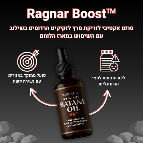מארז הלוחם של ראגנארוק מטפל בנשירה בשלושה כיוונים במקביל — חסימת DHT, ניקוי עומק של הקרקפת ושיפור זרימת הדם.